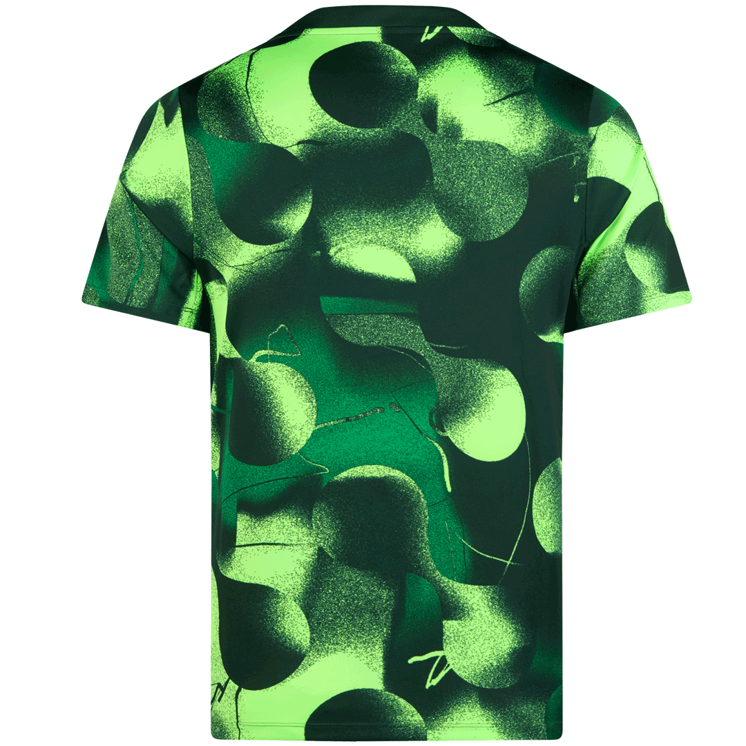 Das Muster ist ein absolutes Highlight, die verschiedenen grünen Farben verlaufen ineinander und bilden dadurch einzigartige Kontraste. Der gestickte NIKE-Swoosh und das hochwertige VfL-Badge sowie das große VW-Logo auf der Front integrieren sich harmonisch in das Gesamtbild.