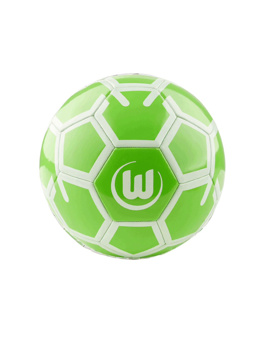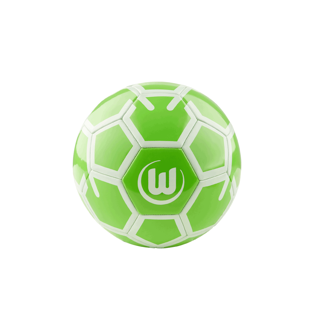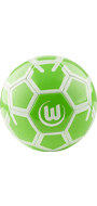 Der Ball hat ein grün-weißes Wabenmuster, die Farben unseres Herzensvereins. Auf einer Seite ist das VfL Logo abgebildet, was deine Liebe zum Verein und Sport zeigt.