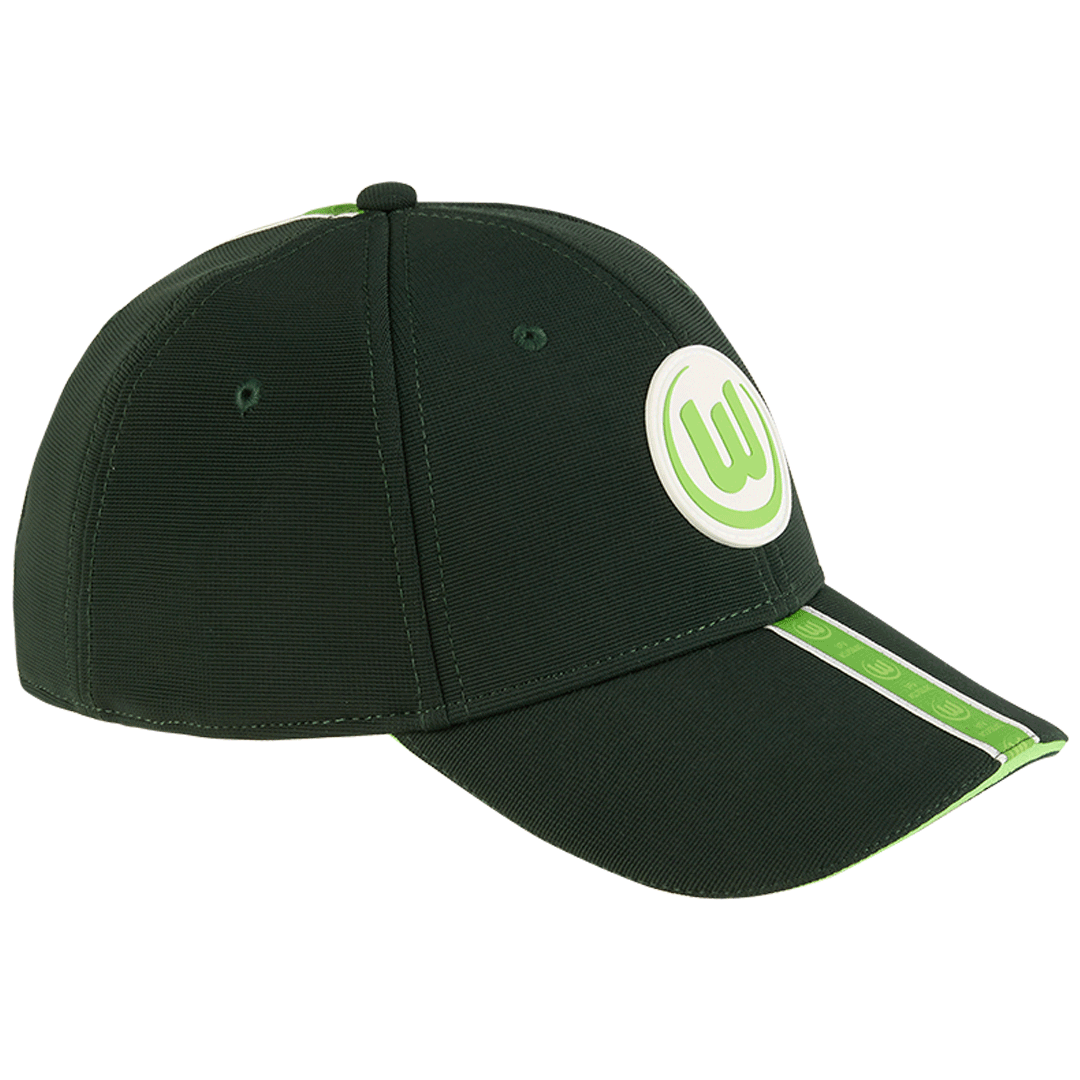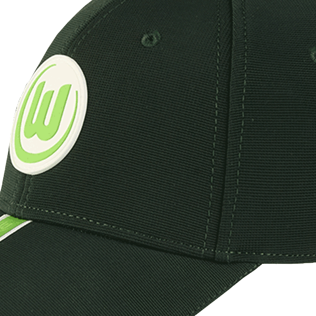 Tolles, dunkelgrünes VfL Wolfsburg Cap mit einem großen Rubber Logo Badge auf der Front.