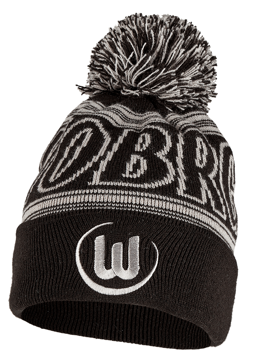 Cool, lässig, dezent und warm - unsere VfL Wolfsburg Bommelmütze ist in schwarz-grau gehalten und mit den Buchstaben WOBRG versehen. Die schwarz-graue Bommel hat verleiht dieser Mütze ein modisches Highlight.