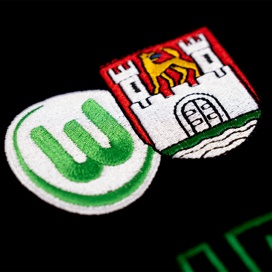 On the back you find the highlight of this jacket - a velvety flock printing of the VfL logo and the city emblem in a discreet black.