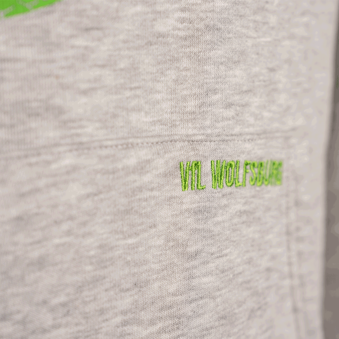 Our VfL Wolfsburg hoodie with logo print is simple yet a real eye-catcher. The casual, mottled gray hoodie is warmly brushed on the inside and has a great used-look logo print on the front. The kangaroo pocket is decorated with subtle VfL Wolfsburg embroidery.