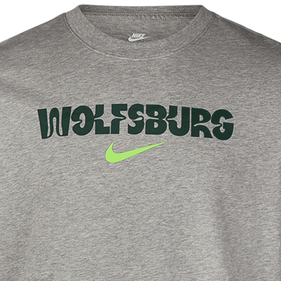 % 32,00 €* (68.75% gespart)Modisches VfL Wolfsburg Freizeitshirt in hellgrau von unserem Ausrüster NIKE mit grünem NIKE-Swoosh und dunkelgrünem WOLFSBURG-Schriftzug drüber. Auf dem Ärmel befindet sich ein VfL Logobadge. Ein perfektes Shirt für einen legeren Auftritt.