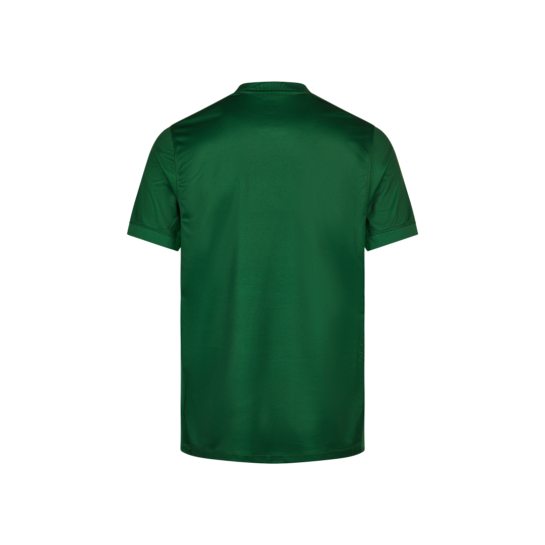 Das Heimtrikot Kids des VfL Wolfsburg für die Saison 2025/26 besticht durch ein auffälliges und dynamisches Design. Die Grundfarbe des Trikots ist ein kräftiges Grün, auf der Vorderseite befindet sich ein strahlenförmiges Muster in verschiedenen Grüntönen, das vom VfL-Logo ausgehend nach außen und unten verläuft. Dieses Muster verleiht dem Trikot eine besondere Tiefe und Dynamik, die die Energie und Leidenschaft des Vereins widerspiegelt.