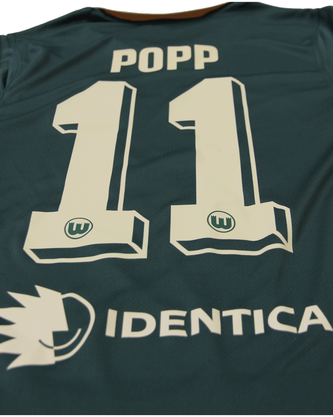 Das Trikot präsentiert sich in einem tiefen, satten Dunkelgrün und setzt mit Akzenten in offwhite an Kragen und Ärmelsäumen dezente Retro-Highlights. Der klassische V-Ausschnitt mit Kragen rundet den nostalgischen Look ab. Im inneren Kragenbereich findet sich der stilvolle Schriftzug „VfL Wolfsburg 1945–2025“ – ein klares Bekenntnis zur Vereinsgeschichte.