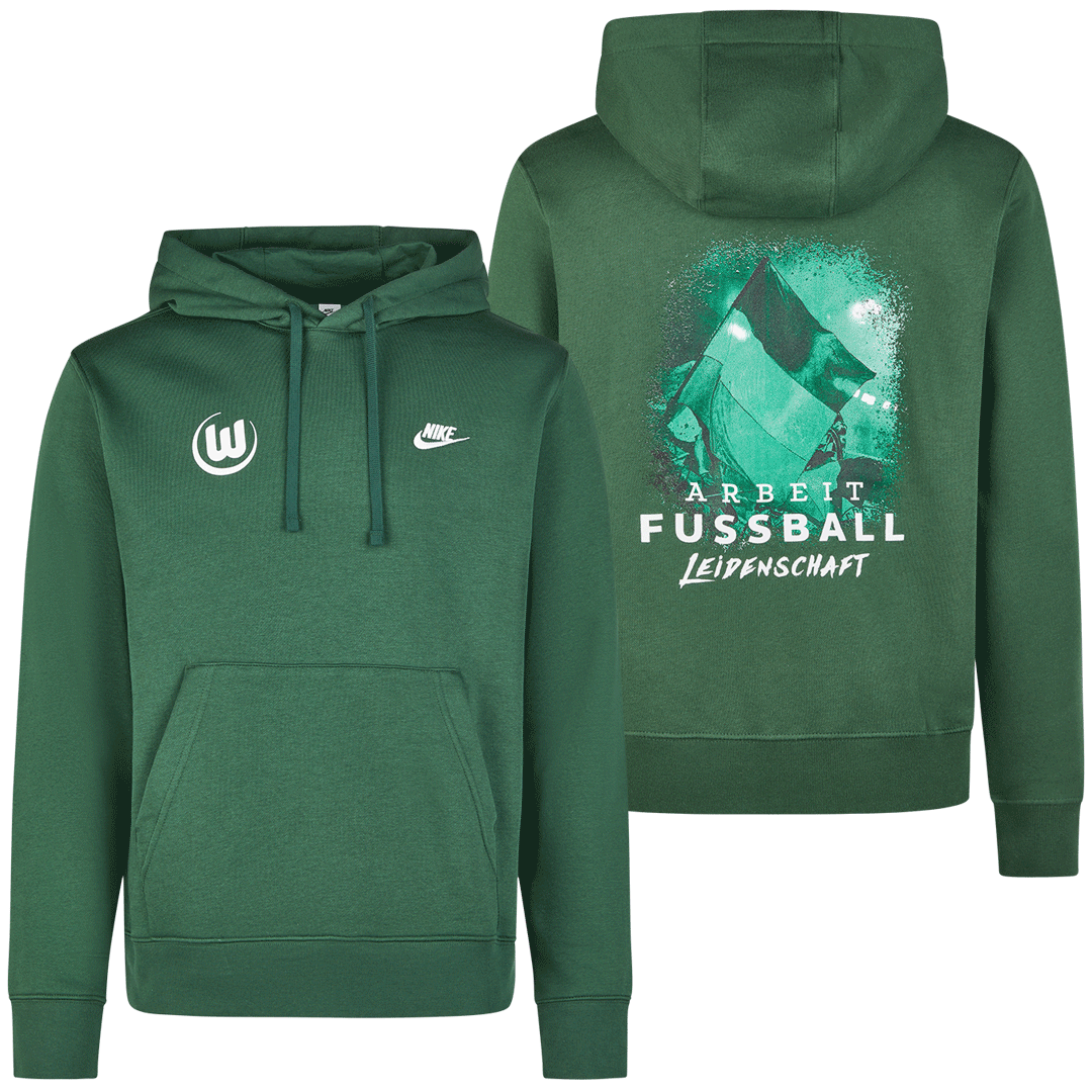 Warme Tage - kühle Abende: kuschle dich in den warmen, stilvollen VfL Wolfsburg Hoodie von Nike.