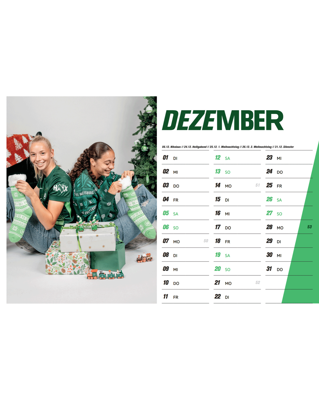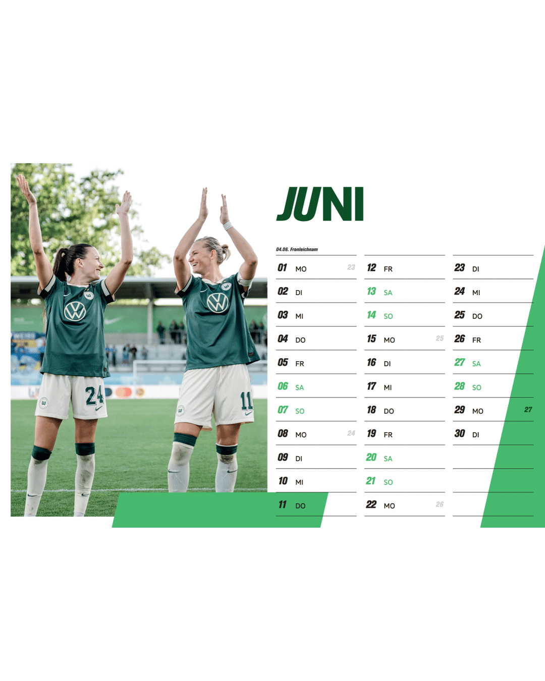 - DIN A3-Kalender mit 12 kraftvollen Fotomotiven unserer VfL-Frauen
