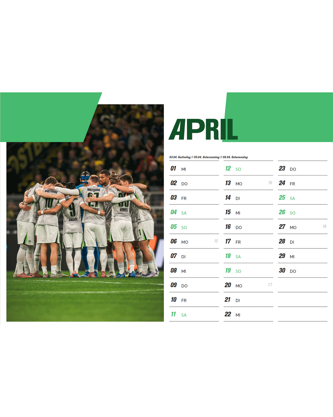 Hol dir jetzt den Kalender und feiere jeden Monat mit unserer Mannschaft!