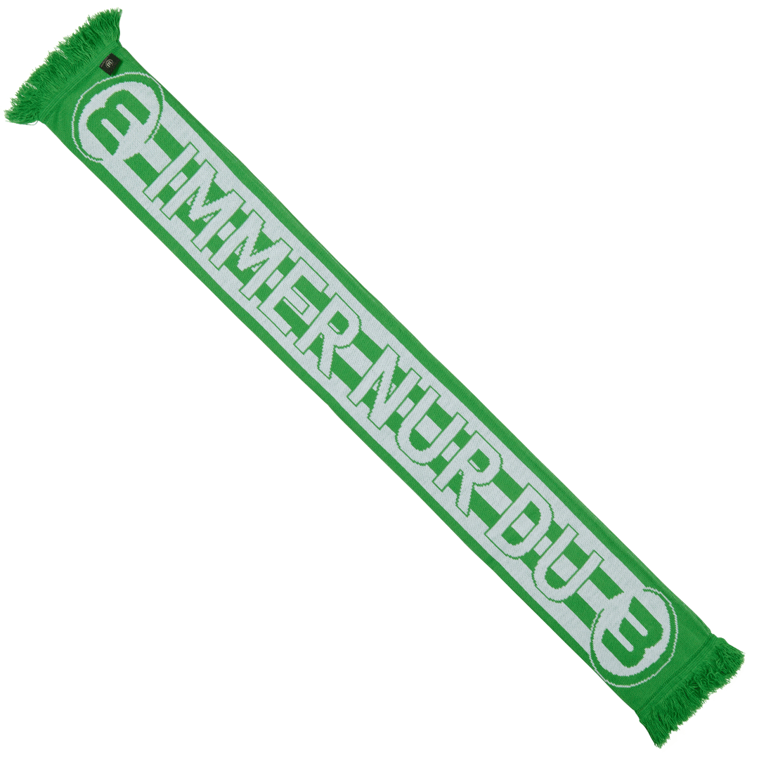 Dieser VfL Wolfsburg Schal geht ans Herz, vereint er doch die beiden VfL-Hymnen “Immer nur du!” und “Grün-Weiss VfL” auf jeweils einer Seite.