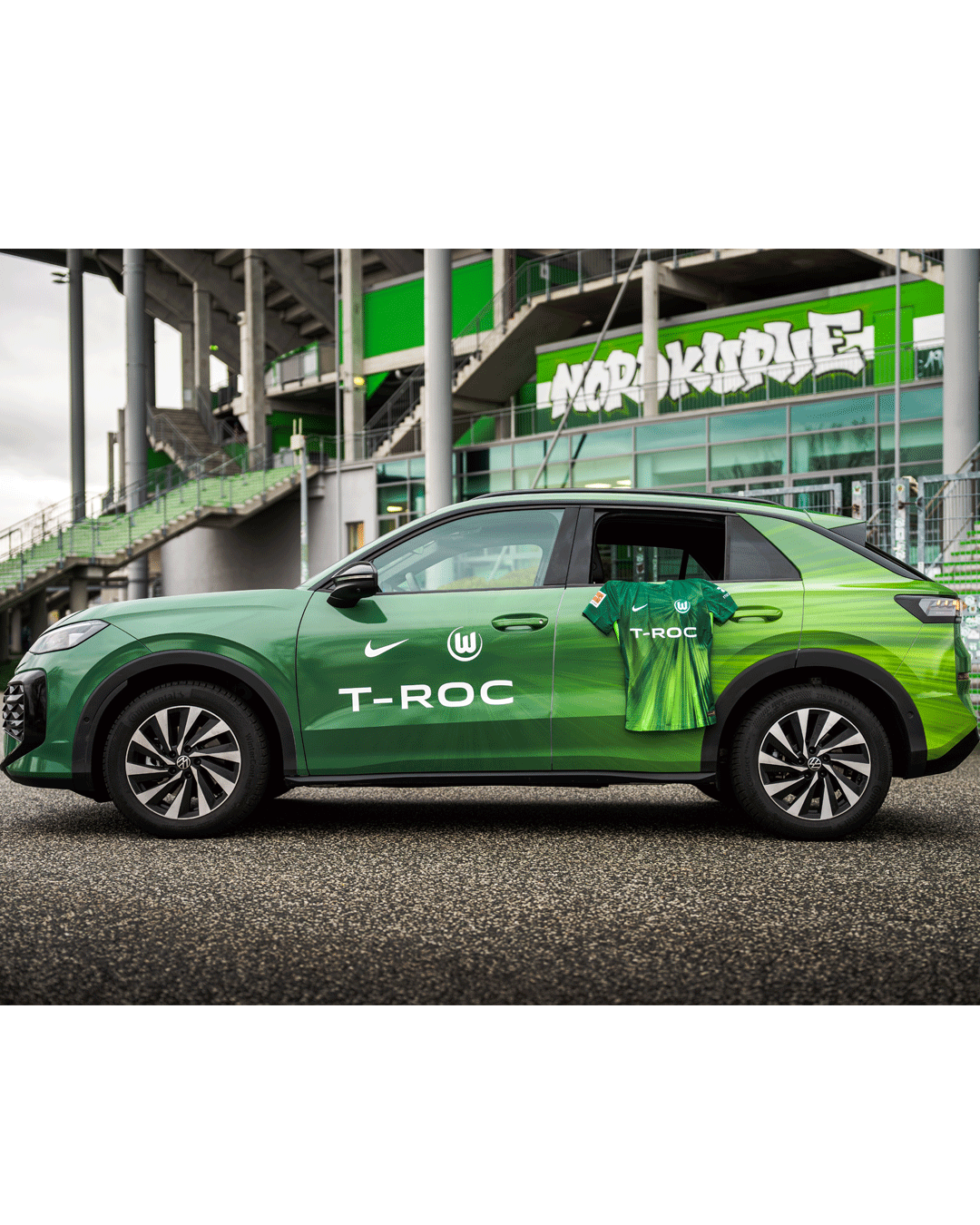 Das Trikot ist mit dem weißen Nike-Swoosh auf der rechten Brustseite versehen, während das weiße Vereinswappen des VfL Wolfsburg stolz auf der linken Brustseite prangt. In der Mitte der Brust befindet sich der weiße T-ROC Schriftzug unseres Hauptsponsors Volkswagen, dass das Gesamtbild des Trikots abrundet. Eine besondere Applikation bleibt erhalten: das weiße Stadtwappen der Stadt Wolfsburg ist wieder im Inneren des Nackenbereichs integriert.