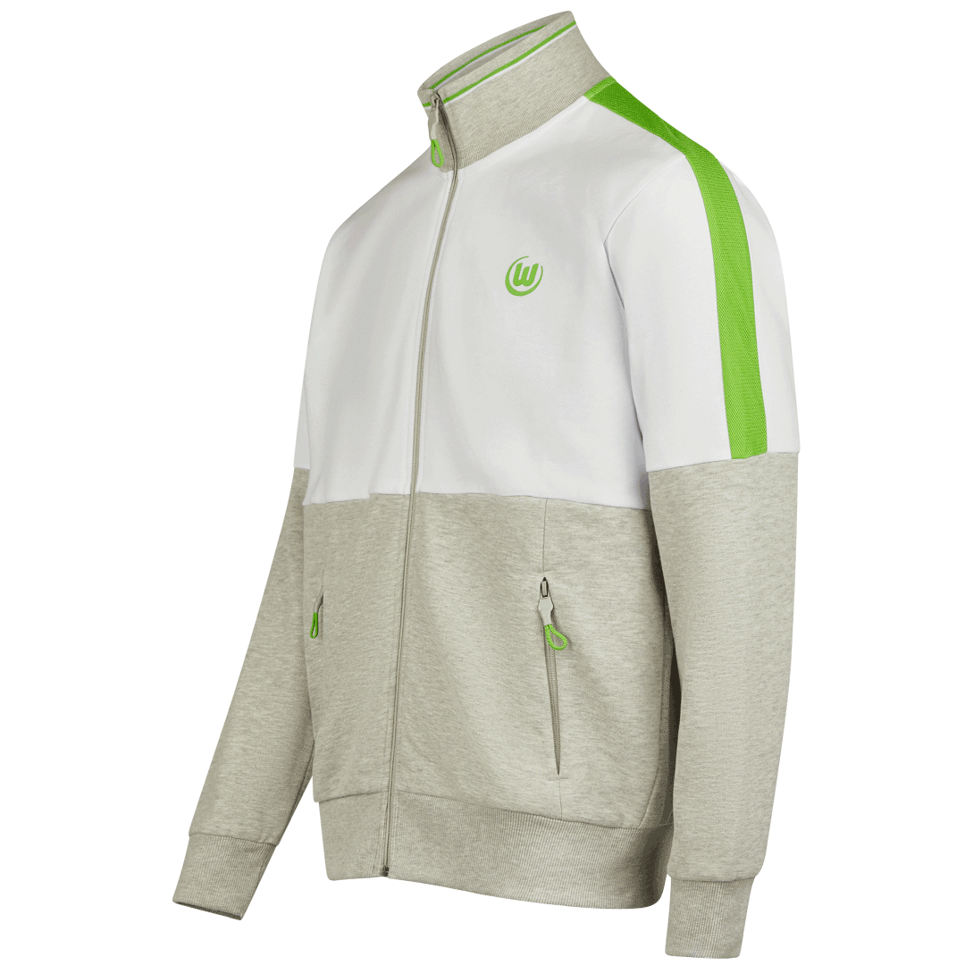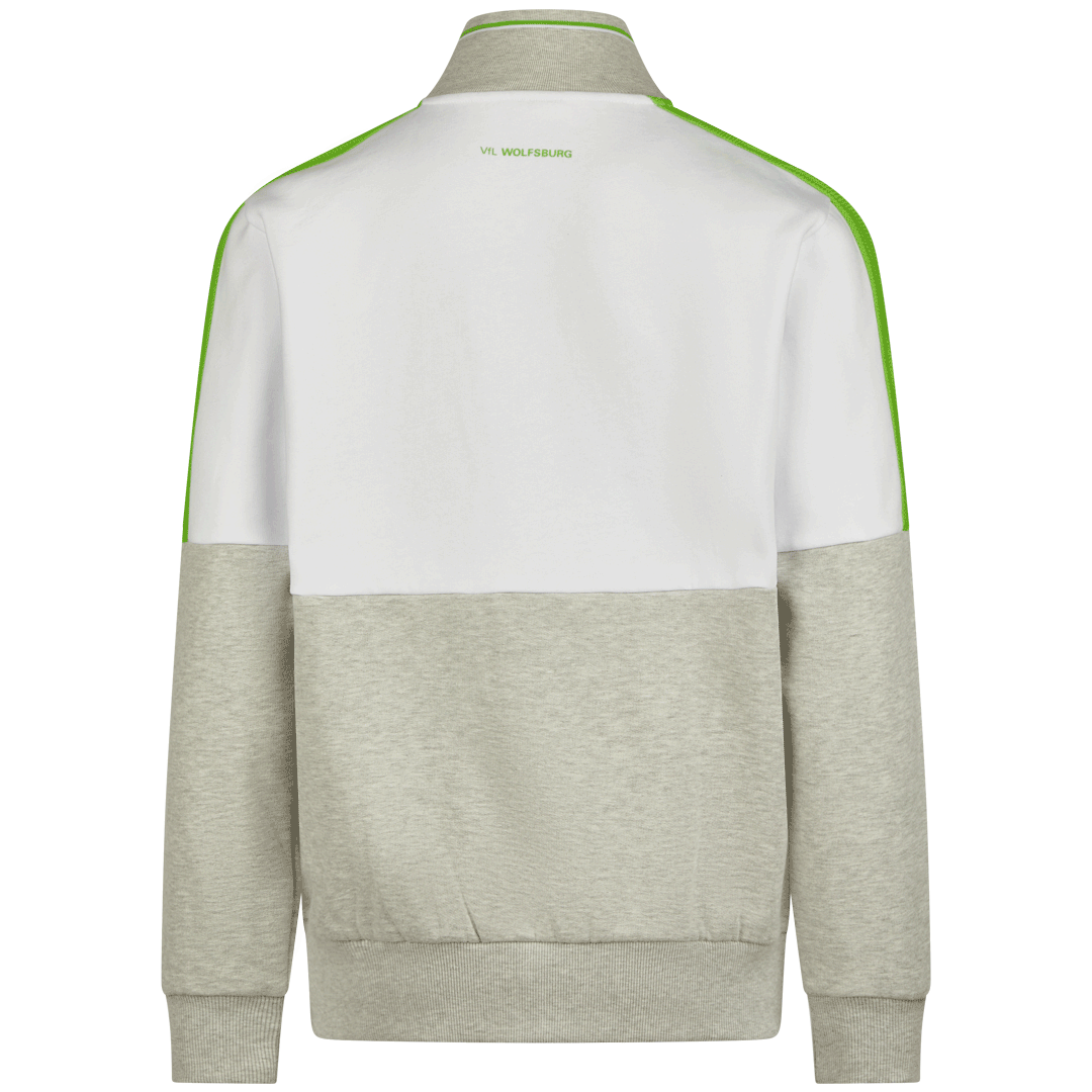 An kühlen Tagen bist du bestens versorgt mit unserer VfL Wolfsburg Sweatjacke. Die klassischen Farben grau-weiß werden mit hellgrünen Akzenten aufgepeppt. Grüne Mesh-Einsätze an den Schultern, weiß-grüne Bündchen am Stehkragen und hellgrünes Innenfutter in den Seitentaschen geben der Jacke ihren VfL-Look.