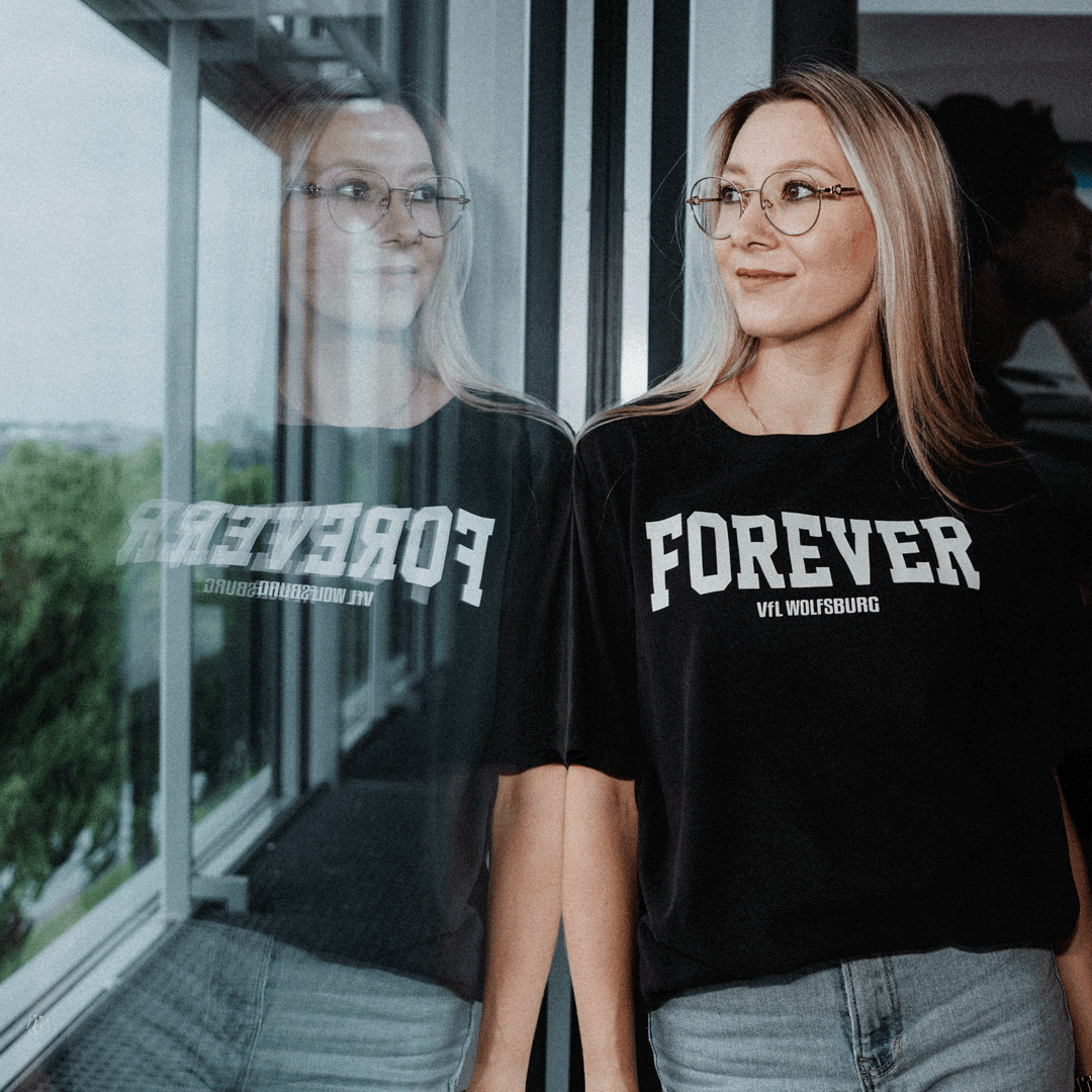 Das T-Shirt ist aus hochwertiger Baumwolle gefertigt und "OEKO-TEX® Made in green" zertifiziert. Es hat einen bequemen Schnitt, der sich jeder Figur anpasst. Das Highlight ist der große, weiße FOREVER Aufdruck auf der Vorderseite, dem der VfL Wolfsburg Schriftzug untergeordnet ist - dies garantiert eine coole und moderne Optik.