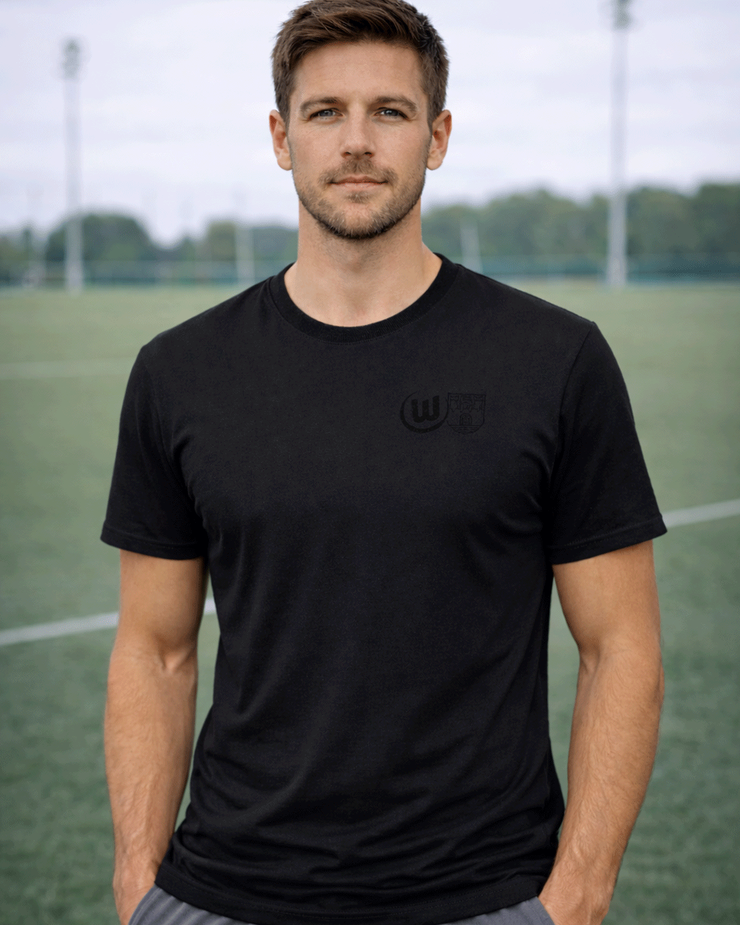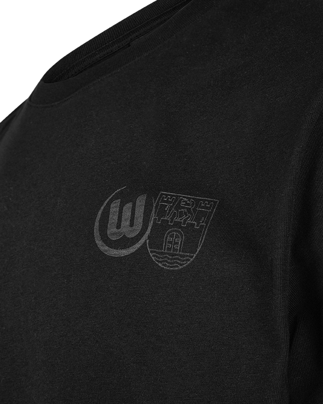 - Dezentes VfL Wolfsburg Logo kombiniert mit dem Wolfsburger Stadtwappen auf der Brust